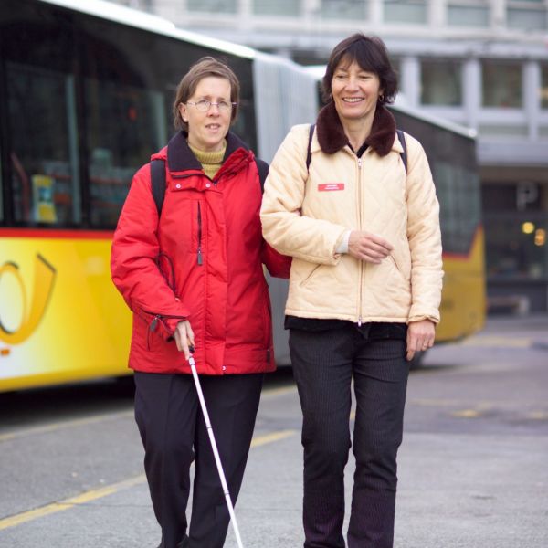 Begleiterin Linda gibt der sehbehinderten Caroline gerne Sicherheit auf Reisen.